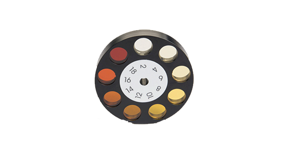 ▶2개의 세트로 이루어진 디스크에는 각 9개의 가드너 색 표준으로 구성되어 있으며 튜브에 샘플액을 넣어 색상 비교